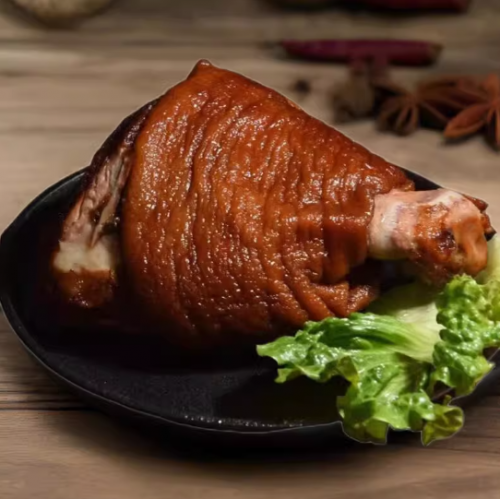 作为山东特色卤味熟食,这虎皮猪肘子显然延续了鲁菜 “善用酱卤、注重本味” 的传统。山东人做卤味,向来讲究 “老卤为魂”,这锅卤汤或许已传承了几代人,每次卤制都要加入新的香料与食材,让味道愈发醇厚。肘子入卤后,需用文火慢炖三小时以上,既不能炖到皮肉分离失了形态,又要保证肉质酥烂入味,期间还要时不时翻动肘子,确保每一寸都能均匀吸收卤汁的精华。