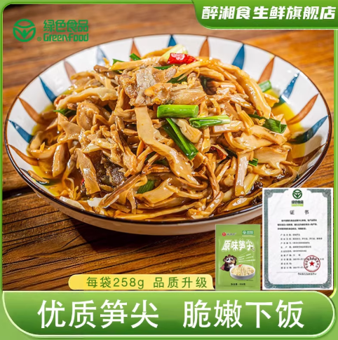 提及湖南地道特产,这款醉湘食原味笋尖绝对是绕不开的美味,258g的精准分量设计尤为贴心,既不会因过量封装导致食用不完而造成浪费,又能轻松满足一家三口一餐的佐餐需求,不管是日常家庭餐桌的常规搭配,朋友小聚时的开胃前菜,亦或是独自用餐时的解馋伴侣,它都能凭借过硬的品质稳稳撑起场面,堪称下饭界公认的“实力派选手”。其食材源自湖南深山腹地的原生态竹林,那里远离工业污染,山清水秀、气候温润湿润,全年充足的光照与丰沛的降水,搭配富含多种矿物质的独特红壤土壤,为春笋的生长提供了得天独厚的自然条件,孕育出的竹笋自带天然清甜,毫无普通竹笋的生涩感。为了保障品质,品牌坚持精选当季头拨鲜嫩春笋,每一根竹笋都经过人工细心筛选,剔除老根、残叶等杂质,只保留最鲜嫩的笋尖部分,再遵循“现采现加工”的严苛原则,从山林采摘到成品封装全程严控在4小时内,通过低温锁鲜技术最大程度锁住竹笋的原生清甜与营养,彻底摒弃了普通竹笋的苦涩感,每一丝笋肉都透着自然的鲜爽气息,从源头保障了食材的纯粹与美味,让食客每一口都能尝到山林的清新滋味。