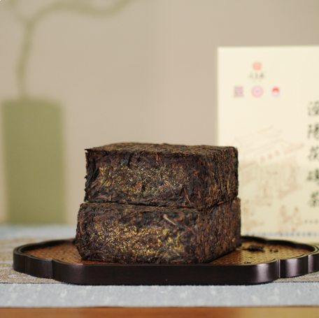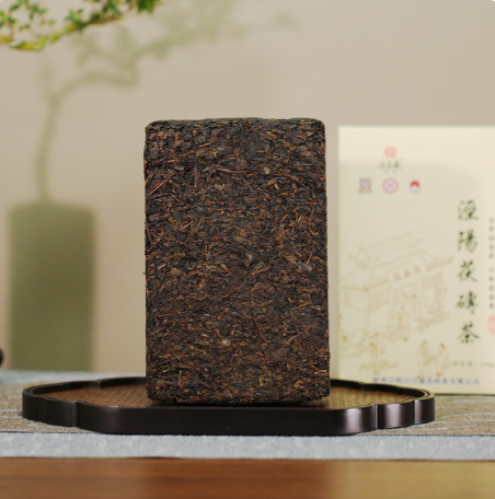 当你亲手拆开泾昌盛泾阳茯茶的礼盒,首先会被礼盒的设计所打动:盒身以深褐色为底,点缀着烫金的泾阳古城门图案与泾河流水纹路,边角处还印有古朴的茶诗,打开礼盒的瞬间,仿佛翻开一本记录着茯茶历史的典籍。礼盒内,一方方规整厚实的茯茶砖被细心包裹,茶砖表面色泽乌润油亮,用手轻摸,能感受到细腻的纹理,凑近鼻尖轻嗅,陈香、菌香与淡淡的枣香交织在一起,醇厚而不张扬,宛如岁月沉淀后的温柔问候。取茶时,需用专用的茶刀沿着茶砖的纹理轻轻撬动,避免破坏金花的完整 —— 这也是品饮茯茶的一份小仪式感。