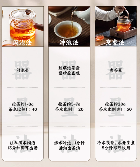 将撬下的小块茯茶投入盖碗,沸水缓缓注入,茶叶在水中舒展,原本紧结的茶块逐渐散开,金花也随之释放出独特的香气。第一泡茶汤色泽橙红,入口略带青涩,这是茶叶唤醒的序曲;第二泡开始,茶汤愈发红浓透亮,宛如琥珀般晶莹,入口先是微润的甘甜,随即温润的菌香在舌尖蔓延,细细品味,还能尝到一丝木质香与枣香,层次感丰富;待到三泡、四泡,茶汤的滋味达到顶峰,醇厚顺滑的口感在口腔中流转,咽下后,喉间泛起持久的回甘,余韵悠长。除了盖碗冲泡,泾阳茯茶还适合煮饮 —— 在寒冷的冬日,取一块茯茶投入煮茶壶,加入清水与少许红枣、枸杞,小火慢煮,不多时,浓郁的茶香便弥漫整个房间。煮出的茶汤更加醇厚绵柔,喝上一口,暖意从胃里蔓延至全身,再搭配一碗羊肉泡馍或一盘油泼面,解腻又暖胃,尽显西北饮食的独特风情。